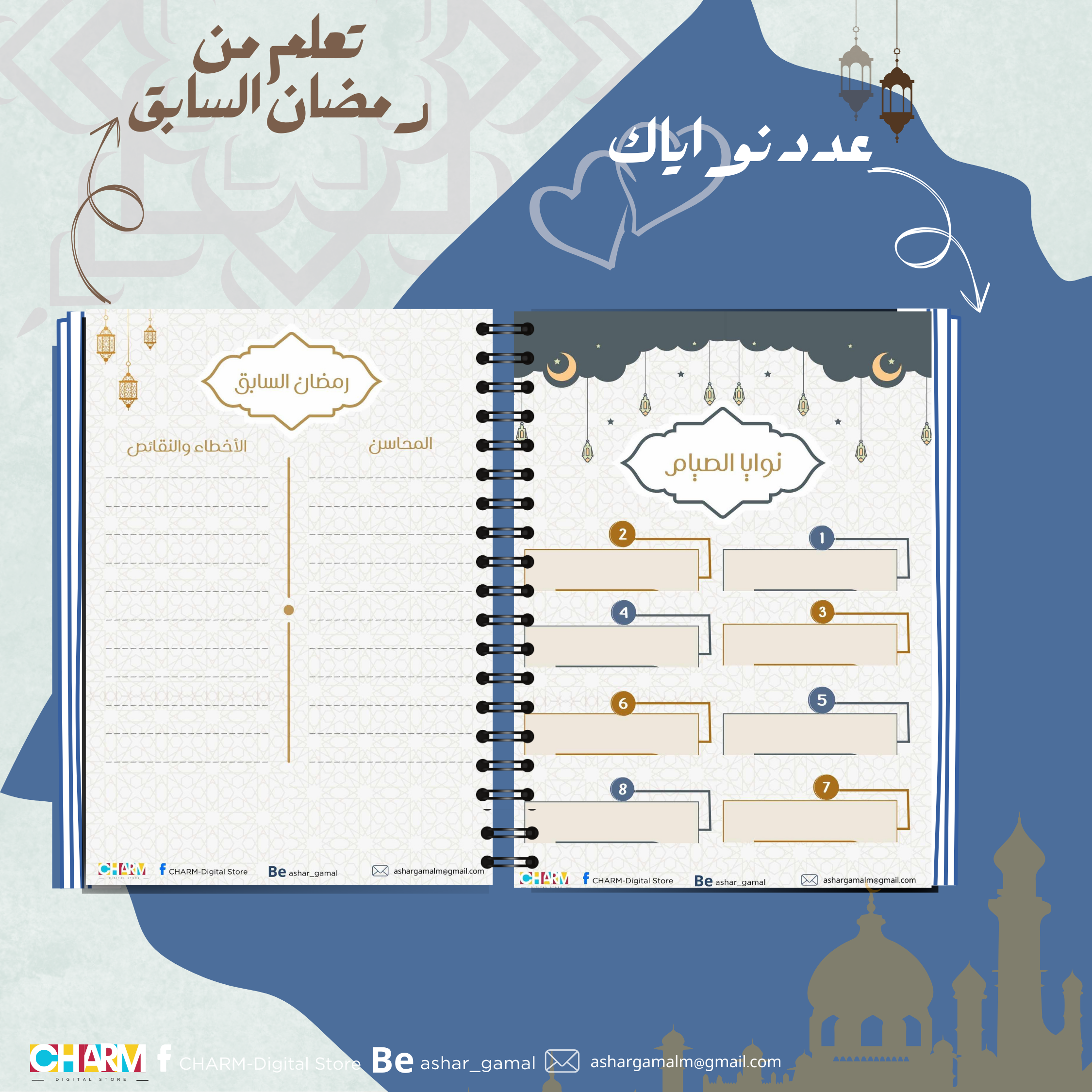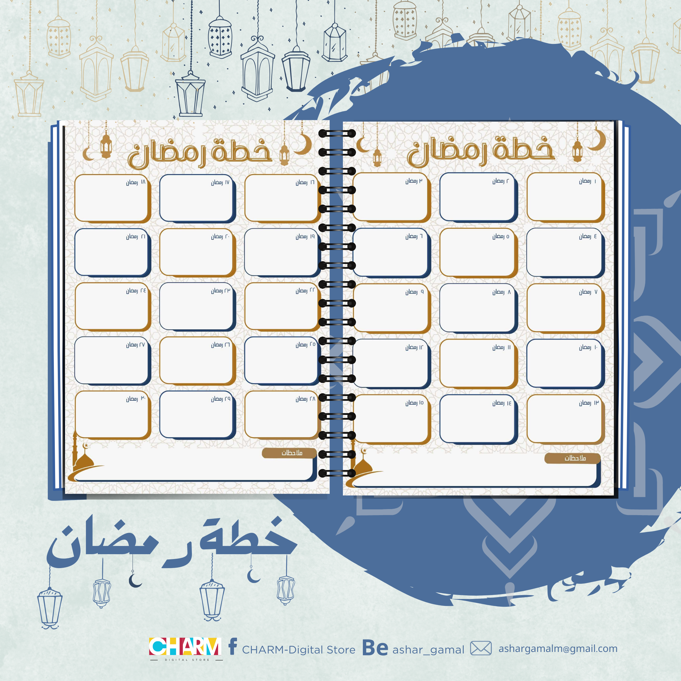استعد لرمضان بروح هادئة وقلب ملئ بالخير والتقوى. 🌟🤲 احصل على بلانر رمضان الآن واستمتع بأيامٍ مميزة ومُفيدة!