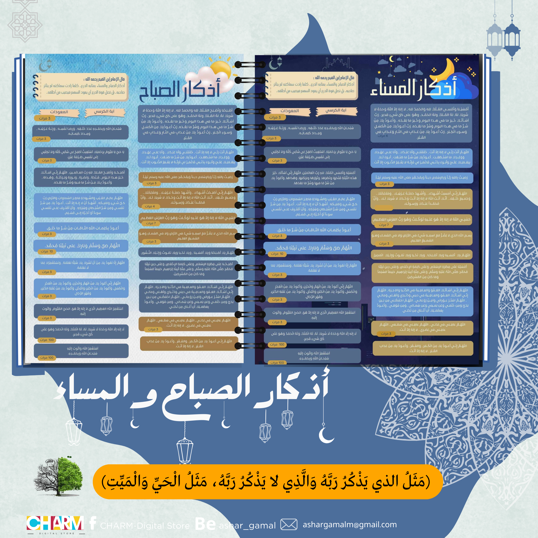 ٢: 🌅 أذكار الصباح والمساء: تضمن أذكار الصباح والمساء لبداية يومك وانتهاءه بروح هادئة.
